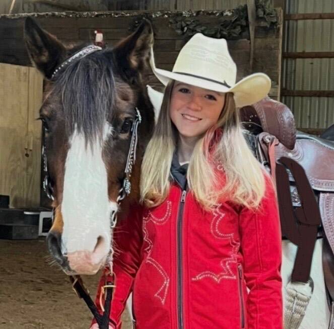 My name is Nieve Morton! I have been riding with the Canadian Cowgirls drill team since 2019. My partner is a buckskin Percheron Paint cross named Jäger. What we like best about being on the team is the opportunity to ride in so many different places in front of all different crowds! I love being able to make so many new memories with my horse. We look forward to all the new trips and experiences we will take part in with the team.